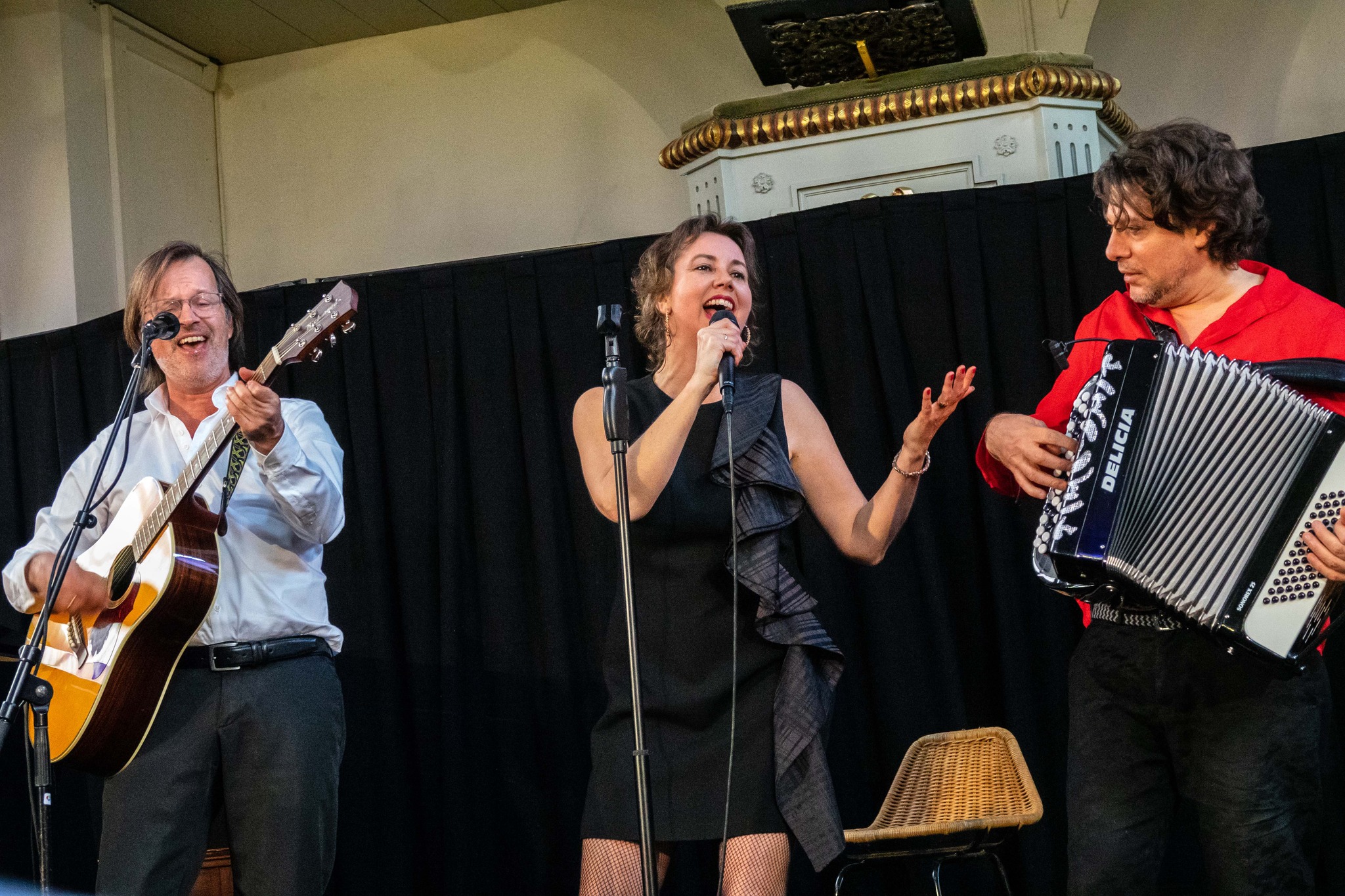 Zangeres Britta Maria, pianist/zanger Maurits Fondse en accordeon-virtuoos Oleg Fateev brengen al vele jaren met veel succes het Franse chanson naar het theater.