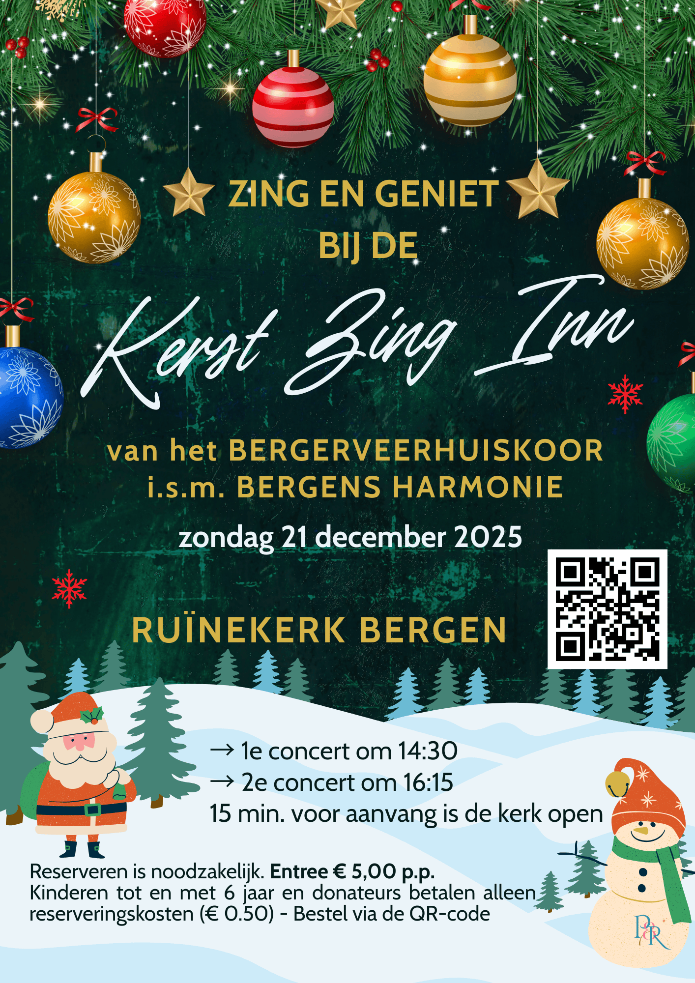 In verband met de jaarlijkse grote toeloop en het beperkte aantal plaatsen zal dit concert twee maal te beluisteren zijn op 21 december en is reserveren verplicht via de bijgaande link of de QR code.
